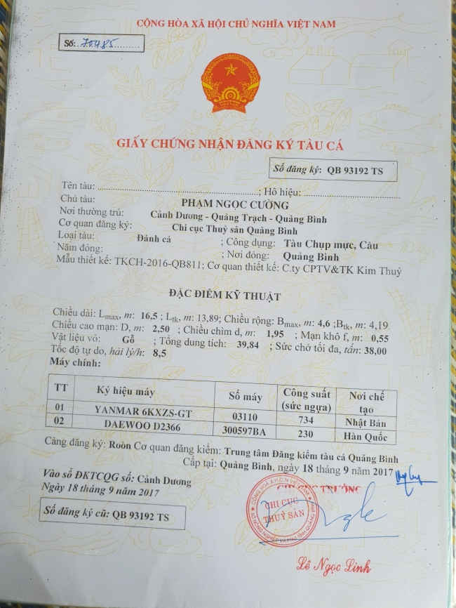 1. SỔ ĐĂNG KIỂM TÀU CÁ
