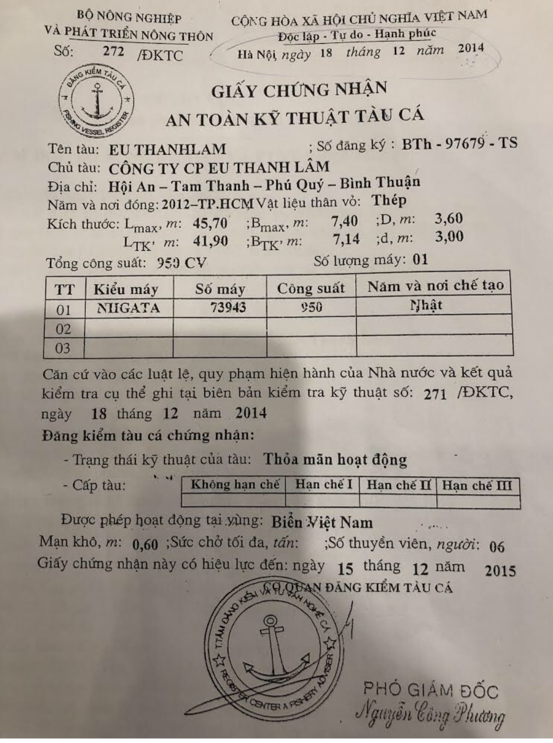 4. GIẤY CHỨNG NHẬN AN TOÀN KỸ THUẬT TÀU CÁ