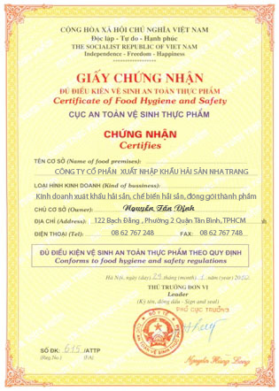 5. GIẤY CHỨNG NHẬN CƠ SỞ ĐỦ ĐIỀU KIỆN AN TOÀN THỰC PHẨM