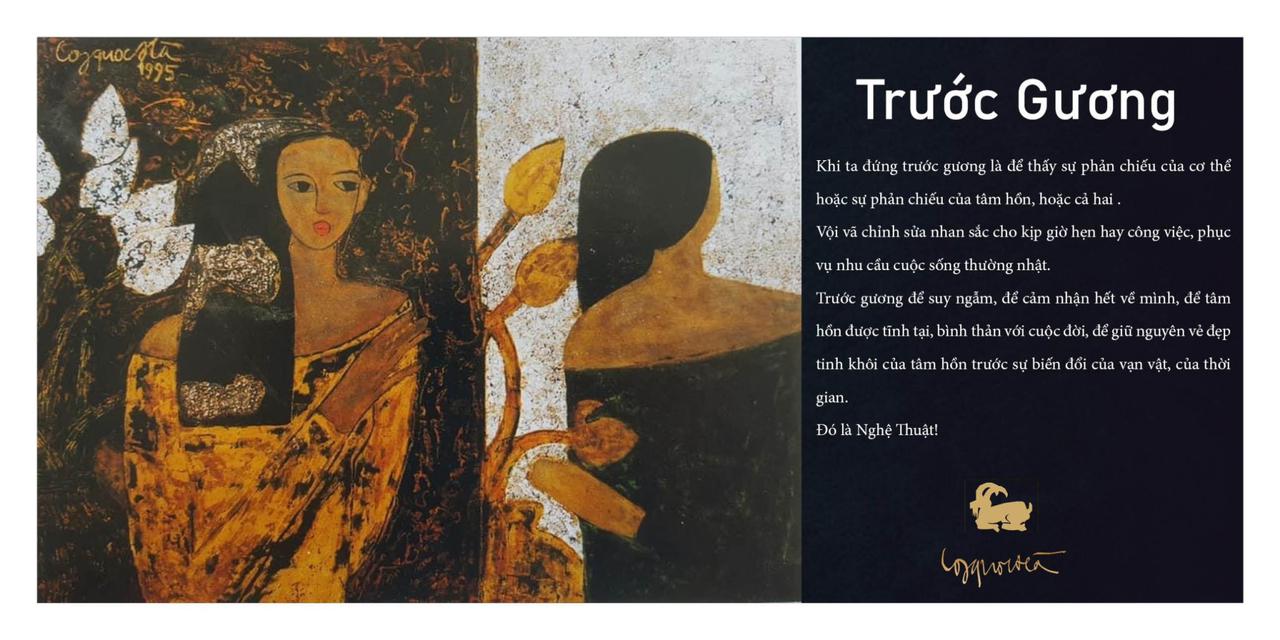 Khi ta đứng Trước Gương là để thấy sự phản chiếu của cơ thể hoặc sự phản chiếu của tâm hồn hoặc cả hai. Vỗi vã chỉnh sửa nhan sắc cho kịp giờ hẹn hay công việc phục vụ nhu cầu cuộc sống thường nhật. Trước Gương để suy ngẫm, để cảm nhận hết về mình, để tâm hồn được tĩnh tại, bình thản với cuộc đời, để giữ nguyên vẻ đẹp tinh khôi cả tâm hồn trước sự biến đổi của vạn vật, của thời gian. Đó là nghệ thuật!